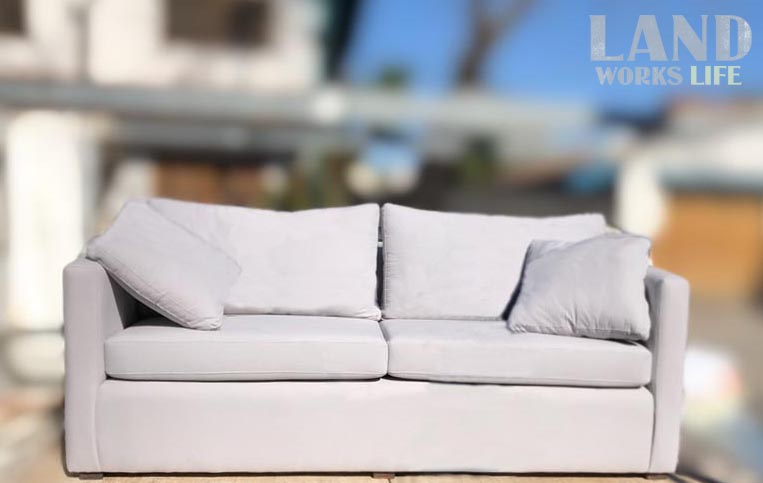 Sillón de 3 cuerpos tapizado en Tussor prelavado. Tiene una sólida estructura de madera maciza con asiento de resortes y respaldo con cinchas reforzadas. Tiene 2 almohadones en el asiento y dos en el respaldo hechos con goma espuma soft y varias capas de vellón siliconado para darle confort y soporte.